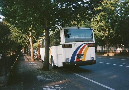 ある宗教法人の宇都宮市内に存在する施設にやってくる観光バス(2001年ごろ)