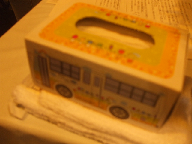 人権意識ラッピングバスを模したティシュ箱