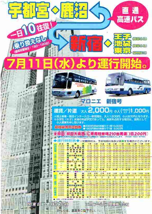 栃木のバス資料館 データ編7 高速バス等のパンフレット