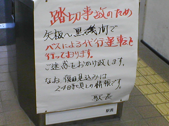 那須塩原駅近くでの踏切事故により、復旧予定が24時頃となったためか、