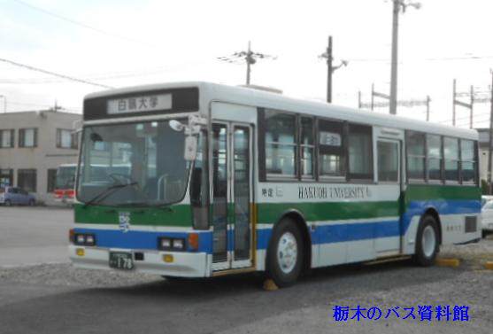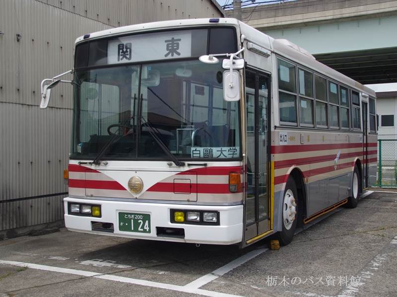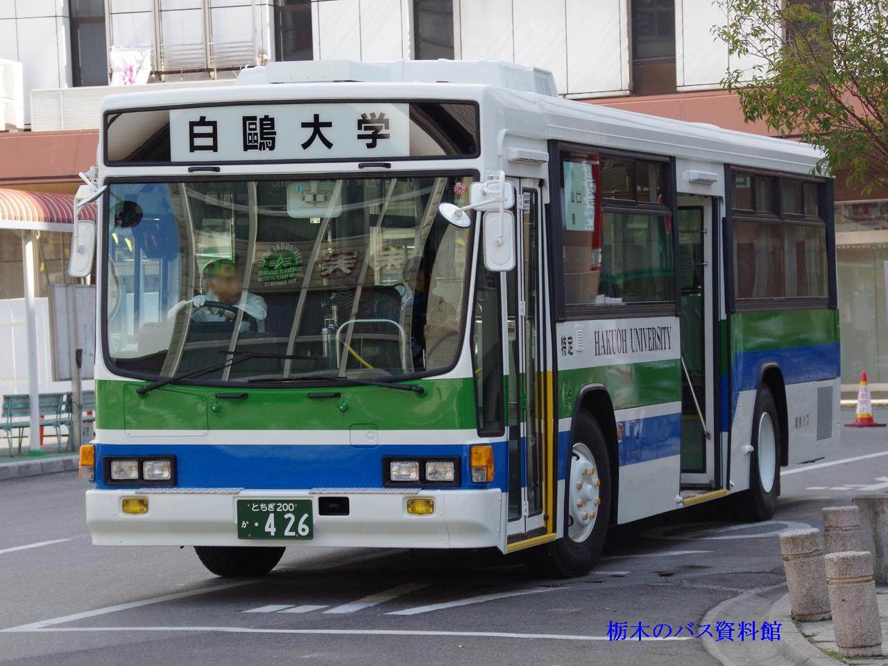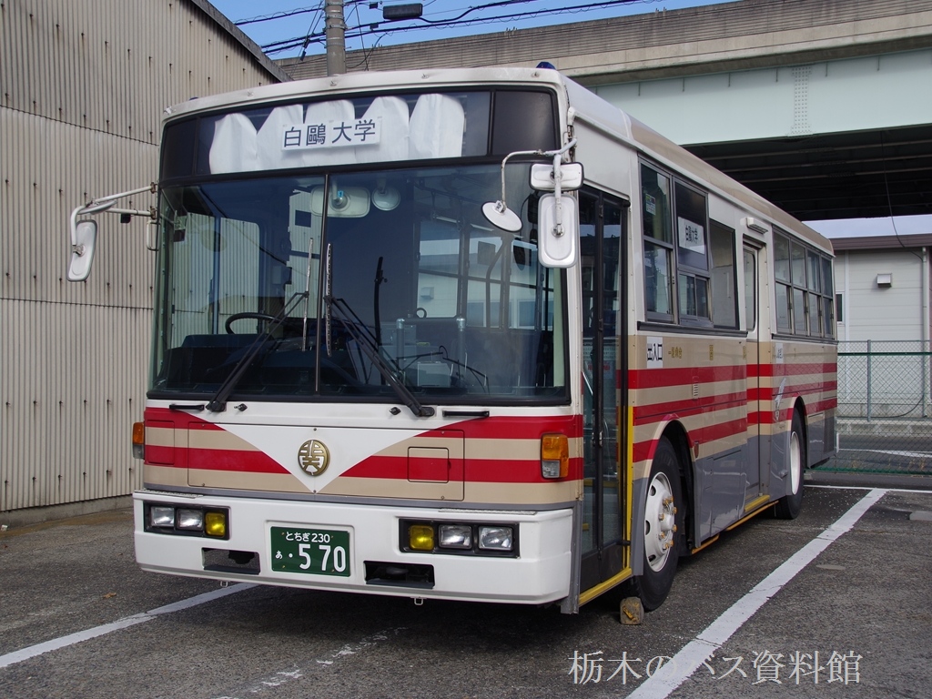 導入当初から、白鴎大学の特定車で、白鴎大学の自家用バスと同色を纏っています。